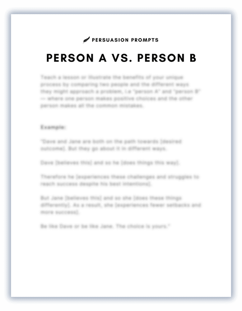 Writer's block? Pick a Persuasion Prompt and let the words flow with a proven framework to structure your thoughts.