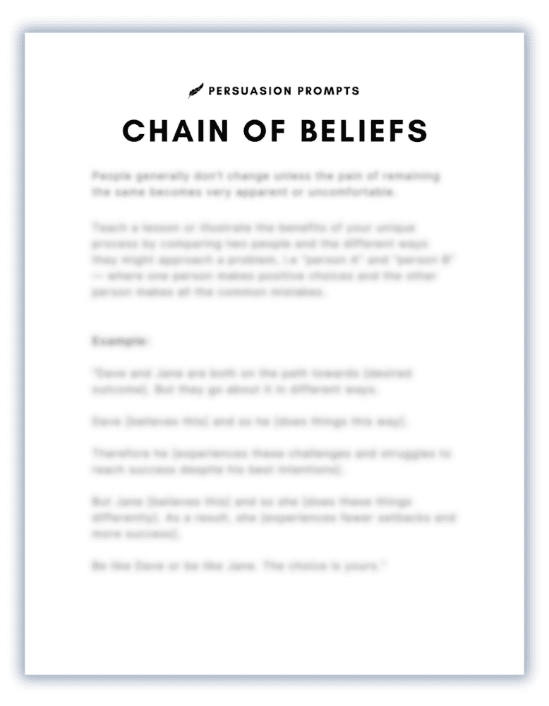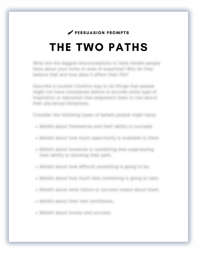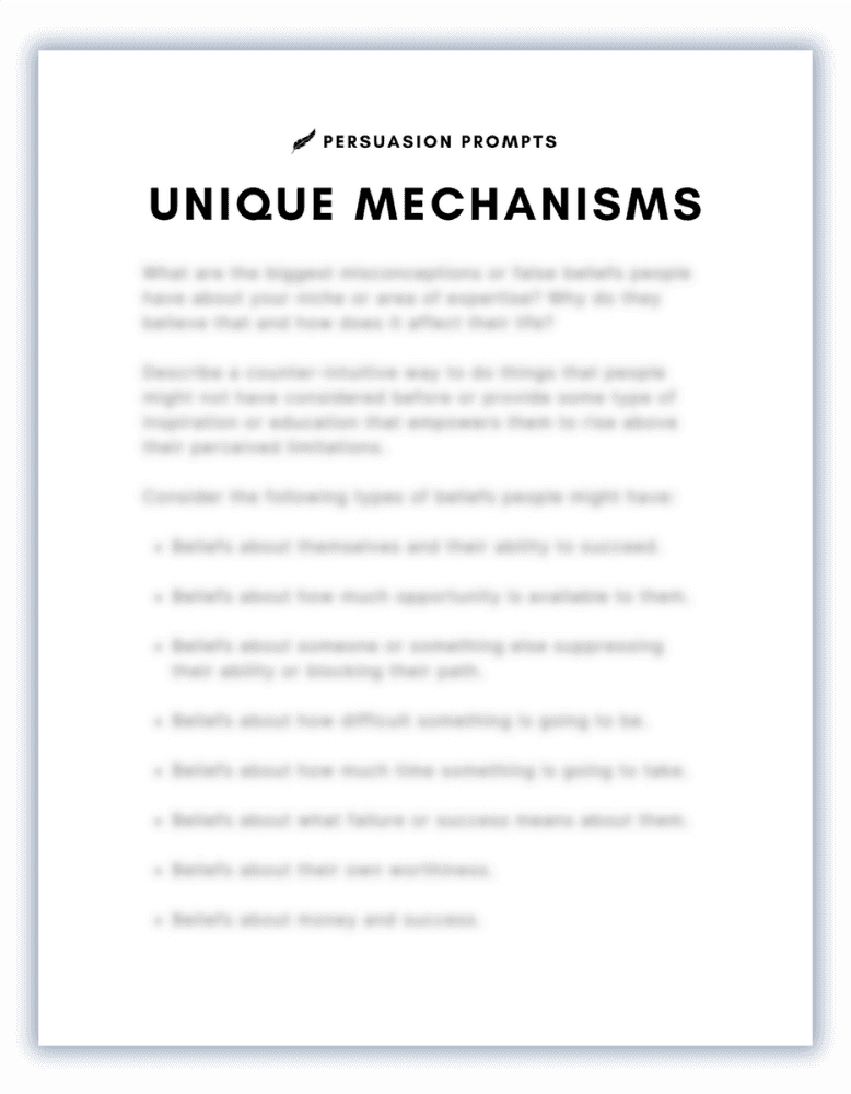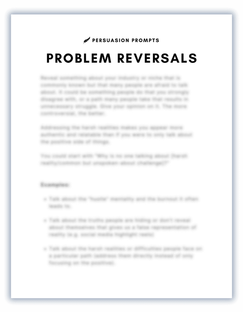 I call them "Persuasion Prompts" - they're designed to help you quickly and easily craft persuasive content that attracts attention, grows your audience, and generates desire for your products and services.