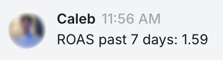 He's now at 1.59 ROAS, meaning his flywheel is paying for its own growth and producing daily profit whether Caleb chooses to post on social media or not