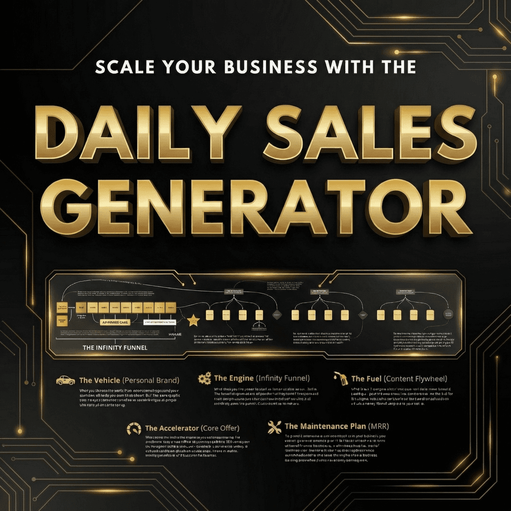 The Daily Sales Generator is an implementation program to help you create a self-funding lead generation flywheel that can work 24/7/365 and generate a consistent flow of leads and customers even when you're fully unplugged from social media.